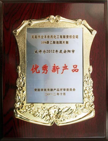 全豐集團10%萘乙酸泡騰片劑榮獲2012年度“安陽市優(yōu) 秀新產(chǎn)品”