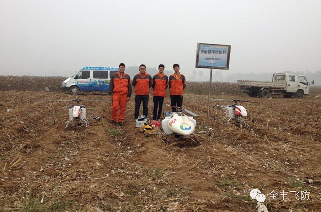 在棉花田里,自走式噴霧機(jī)、自走式旋耕機(jī)、大型棉花收采機(jī)、大型植保拖拉機(jī)及全豐航空植保農(nóng)用無人直升機(jī)齊上陣,實(shí)現(xiàn)對棉花從種到收的全程機(jī)械化作業(yè)。植保專家從作業(yè)速度、作業(yè)時(shí)間、作業(yè)效果比較分析,農(nóng)用無人機(jī)在病蟲害防治方面具有絕 對的優(yōu)勢,同時(shí)因遠(yuǎn)距離操作,避免了農(nóng)藥對人體的傷害,飛防專用藥劑的高濃度、低容量、簡包裝具備生態(tài)環(huán)保優(yōu)勢。同時(shí),它的出現(xiàn)解決了棉花后期大型機(jī)械無法進(jìn)地作業(yè)或者進(jìn)地作業(yè)將傷害棉花產(chǎn)量的問題。
