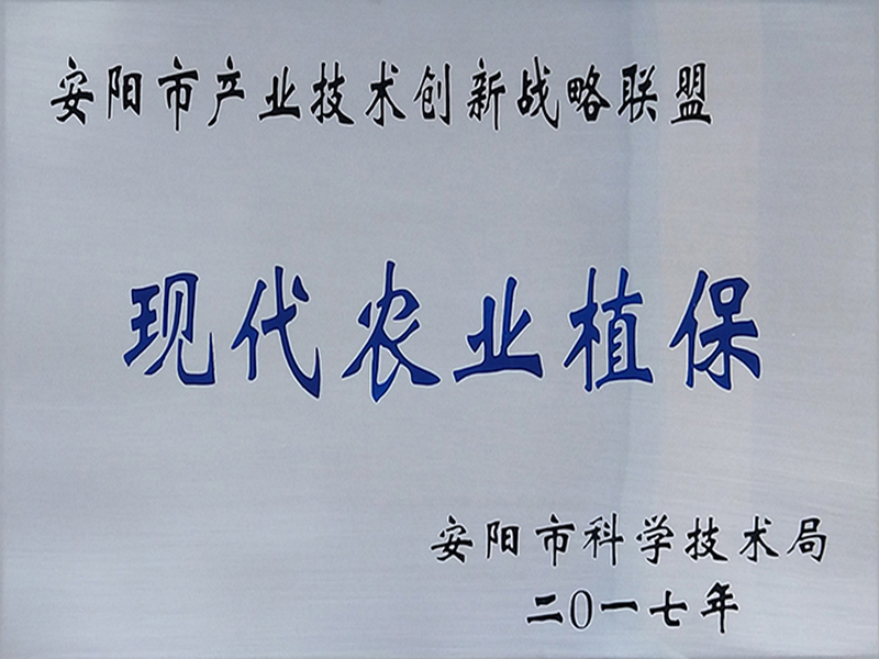 榮獲2017年度“安陽市現(xiàn)代農(nóng)業(yè)植保產(chǎn)業(yè)技術(shù)創(chuàng)新戰(zhàn)略聯(lián)盟”