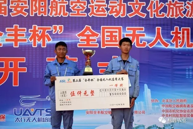 隨后進行的無人機應(yīng)用大賽更是扣人心弦,引人入勝。大賽邀請18家全國各知名無人機企業(yè)參賽。比賽內(nèi)容為農(nóng)用植保無人機在作業(yè)時要求飛行軌跡精準,指定飛行高度和指定飛行速度情況下沿預(yù)定軌跡進行噴灑作業(yè)時方能滿足作業(yè)要求,達到噴灑效果。參賽的無人機根據(jù)要求的速度、高度作業(yè)完畢后,由測量系統(tǒng)實時給出該架次作業(yè)軌跡的飛行參數(shù),計算出該架次飛行的速度偏離度和高度偏離度,綜合二者分數(shù)后對該參賽無人機進行排名。經(jīng)過激烈角逐,河南標普農(nóng)業(yè)科技有限公司和安陽全豐航空植保科技股份有限公司分獲一、三等獎。