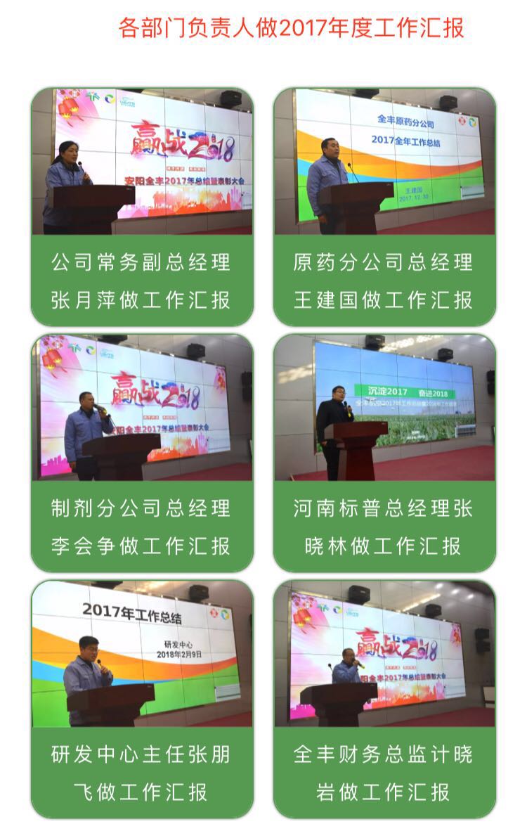 會(huì)上各部門負(fù)責(zé)人就2017年工作進(jìn)行了認(rèn)真總結(jié),并提出2018年工作規(guī)劃和目標(biāo),公司董事長、總經(jīng)理王志國做了公司2017年工作報(bào)告。王總講到,過去的2017年在所有全豐人的共同努力下,公司取得了一定的工作業(yè)績,成立了院士工作站,被國家農(nóng)業(yè)部確定為國內(nèi)一家航空植保重 點(diǎn)實(shí)驗(yàn)室,并獲得全國五一勞動(dòng)獎(jiǎng)狀。安陽全豐已初步完成農(nóng)業(yè)產(chǎn)業(yè)化布局。依托現(xiàn)有原藥和制劑業(yè)務(wù)板塊,全豐航空和標(biāo)普農(nóng)業(yè)立足智慧農(nóng)業(yè)五大模塊持續(xù)發(fā)力,力爭做國內(nèi)行業(yè)智慧農(nóng)業(yè)服務(wù)商,并談到全豐未來三至五年的發(fā)展規(guī)劃。