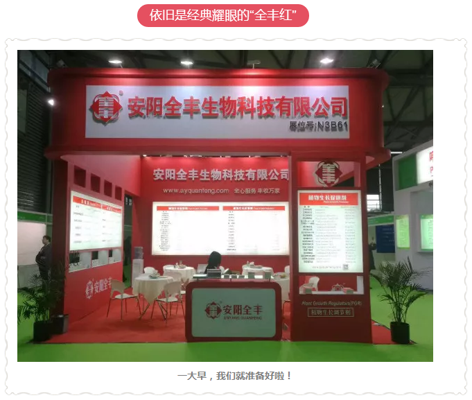 2018年3月7日,第十九屆中國(guó)國(guó)際農(nóng)用化學(xué)品及植保展覽會(huì)CAC2018,在上海新國(guó)際博覽中心隆重開幕啦!安陽全豐在N3館N3B61恭候您的蒞臨。下面一起體會(huì)下現(xiàn)場(chǎng)的盛況吧!