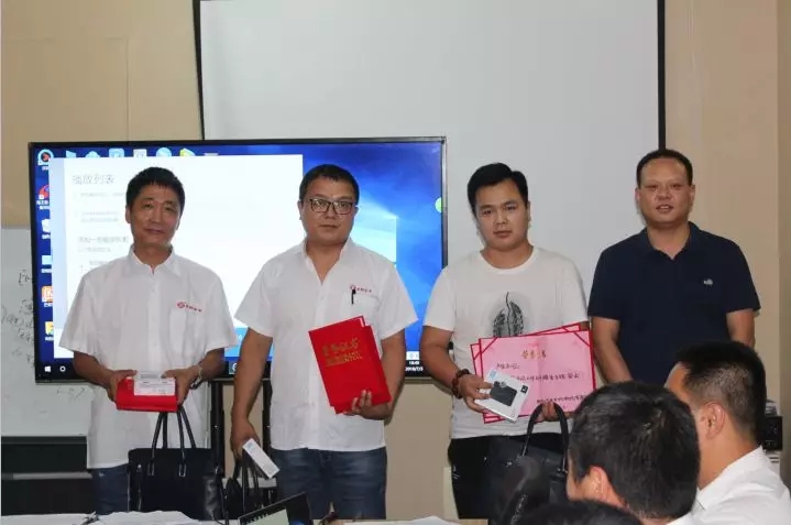 安陽全豐副總經(jīng)理張?jiān)缕紴橹苿╀N售部半年銷售冠軍進(jìn)行頒獎